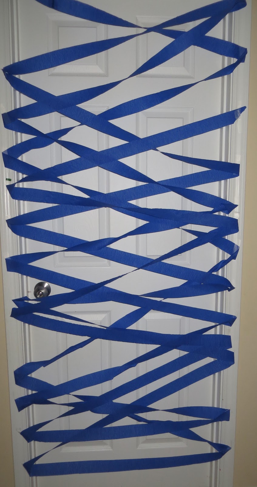 I don't like to do a ton for April Fool's Day, but I do enjoy pulling a couple of simple pranks on my kids!  Here's some Dollar Tree crepe paper taped across their door!  They woke up, opened their door, and yelled "MOM!"  I loved it!  CLICK HERE for some other ideas - I want to do #28 to my kids next year!
